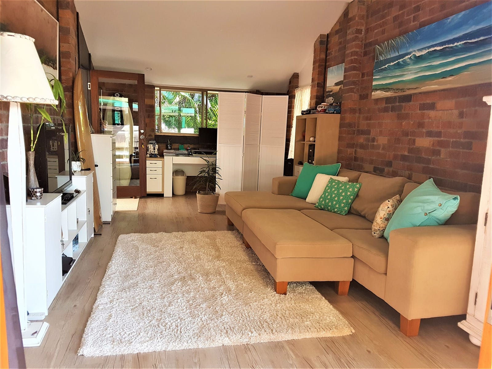 This stunning three bedroom home plus separate studio offers an amazing lifestyle being located in a quiet street with only a 5-minute walk to the beach and creek, parks, shops, supermarket & local cafes. Immaculately presented, this modern, newly renovated, single level home has cathedral ceilings, blackbutt hardwood floors, stunning kitchen, separate semi self-contained studio and two carports with extra covered space for a caravan, trailer, boat or motorhome